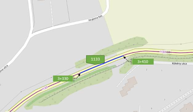 a 1133 j. Tinnye-Piliscsaba összekötő úton a 3+330 – 3+410 km szelvények közötti szakaszon teljes útszélességben:
